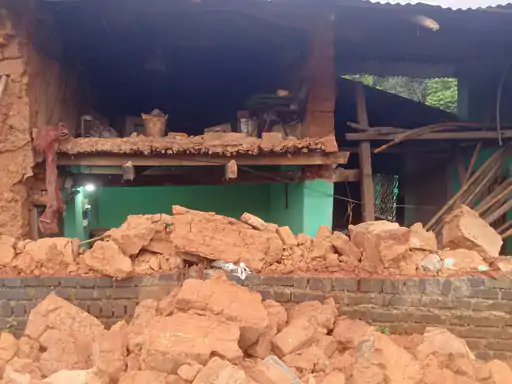 शिकायत के अनुसारए बरसात के दौरान मकान बना रहा था। निर्माण के दौरान बिना तकनीकी सलाह के जमीन खोदकर कॉलम खड़ा किया गया। गड्ढे में पानी भरने से संतोषिनी का मकान गिर गया। मुआवजे की मांग के लिए संतोषिनी ने सरपंच का सत्यापन पत्रए तहसीलदार का आदेश पत्र और पटवारी का पंचनामा प्रतिवेदन संलग्न कर आवेदन दिया है।