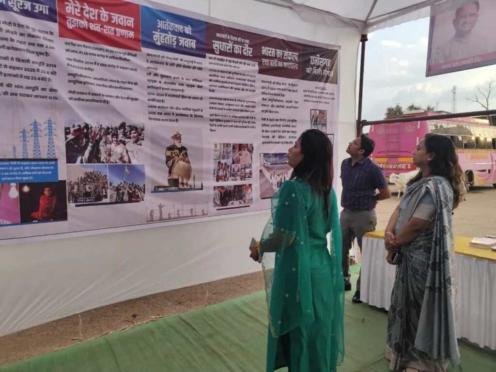 छायाचित्र प्रदर्शनी प्रधानमंत्री श्री मोदी जी की विकसित भारत की संकल्पना, सेवा कार्यों, प्रधानमंत्री नरेंद्र मोदी के नेतृत्व में भारत को विकसित राष्ट्र बनाने के संकल्प और उनके जीवन की प्रेरणादायक यात्रा एवं जनकल्याणकारी योजनाओं को छायाचित्रों के माध्यम से प्रदर्शित किया गया। प्रदर्शनी में मोदी के बचपन, उनकी शिक्षा, देशभक्ति तथा प्रधानमंत्री के रूप में उनके द्वारा किए गए महत्वपूर्ण कार्यों को छायाचित्र प्रदर्शनी के माध्यम से दर्शाया गया था।