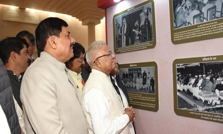 राज्यपाल मंगुभाई पटेल ने बुधवार को विधानसभा के विशेष सत्र के अवसर पर “मध्यप्रदेश विधानसभा के 1956 से 2025 तक के इतिहास के पल और मुख्यमंत्री डॉ. मोहन यादव का "अभ्युदय मध्यप्रदेश- विकास और सेवा के दो वर्ष” विषय पर आधारित चित्र प्रदर्शनी का शुभारंभ किया। इस अवसर पर विधानसभा अध्यक्ष नरेन्द्र सिंह तोमर, मुख्यमंत्री डॉ. मोहन यादव, संसदीय कार्य मंत्री कैलाश विजयवर्गीय, नेता प्रतिपक्ष उमंग सिंघार एवं अन्य जनप्रतिनिधि मौजूद थे।