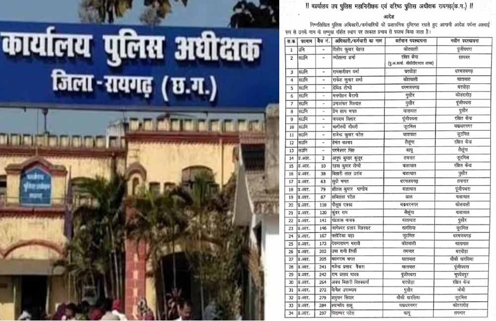 रायगढ़ में पुलिस महकमे में हलचल: SSP ने 219 जवानों का किया तबादला, एक दर्जन ASI भी प्रभावित