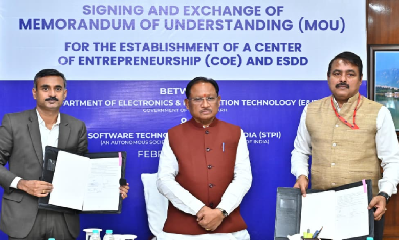 मुख्यमंत्री साय ने कहा कि युवाओं में उद्यमिता विकसित करने और उन्हें आईटी एवं आईटीईएस जैसे क्षेत्रों में विश्वस्तरीय अवसर राज्य के भीतर ही उपलब्ध कराने की दिशा में यह पहल की गई है। इस एमओयू के तहत राज्य में सेंटर ऑफ एंटरप्रेन्योरशिप (CoE) एवं इलेक्ट्रॉनिक्स सिस्टम डिजाइन एंड डेवलपमेंट (ESDD) सेंटर की स्थापना की जाएगी। उन्होंने कहा कि प्रस्तावित सेंटर ऑफ एंटरप्रेन्योरशिप के माध्यम से आर्टिफिशियल इंटेलिजेंस, वन एवं औषधीय उत्पाद आधारित मेडटेक, स्मार्ट सिटी समाधान तथा स्मार्ट कृषि जैसे चार महत्वपूर्ण क्षेत्रों में नवाचार और स्टार्ट-अप को प्रोत्साहन मिलेगा। साथ ही, एक अत्याधुनिक इलेक्ट्रॉनिक्स सिस्टम डिजाइन एंड डेवलपमेंट (ESDD) सेंटर की स्थापना की जाएगी, जो प्रति वर्ष लगभग 30 से 40 हार्डवेयर स्टार्ट-अप और एमएसएमई को प्रोडक्ट डिजाइन, प्रोटोटाइपिंग, कौशल विकास एवं क्षमता निर्माण की सुविधाएं प्रदान करेगा।