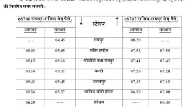 रायपुर-अभनपुर-रायपुर मेमू पैसेंजर ट्रेन का परिचालन राजिम तक विस्तार नई स्पेशल ट्रेन के दौरान रायपुर एवं राजिम के मध्य आने…