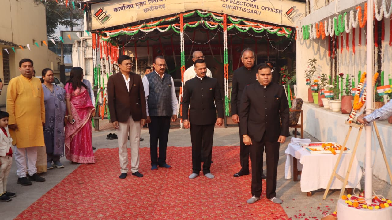 CG : 77वें गणतंत्र दिवस पर मुख्य निर्वाचन पदाधिकारी यशवंत कुमार ने फहराया राष्ट्रीय ध्वज