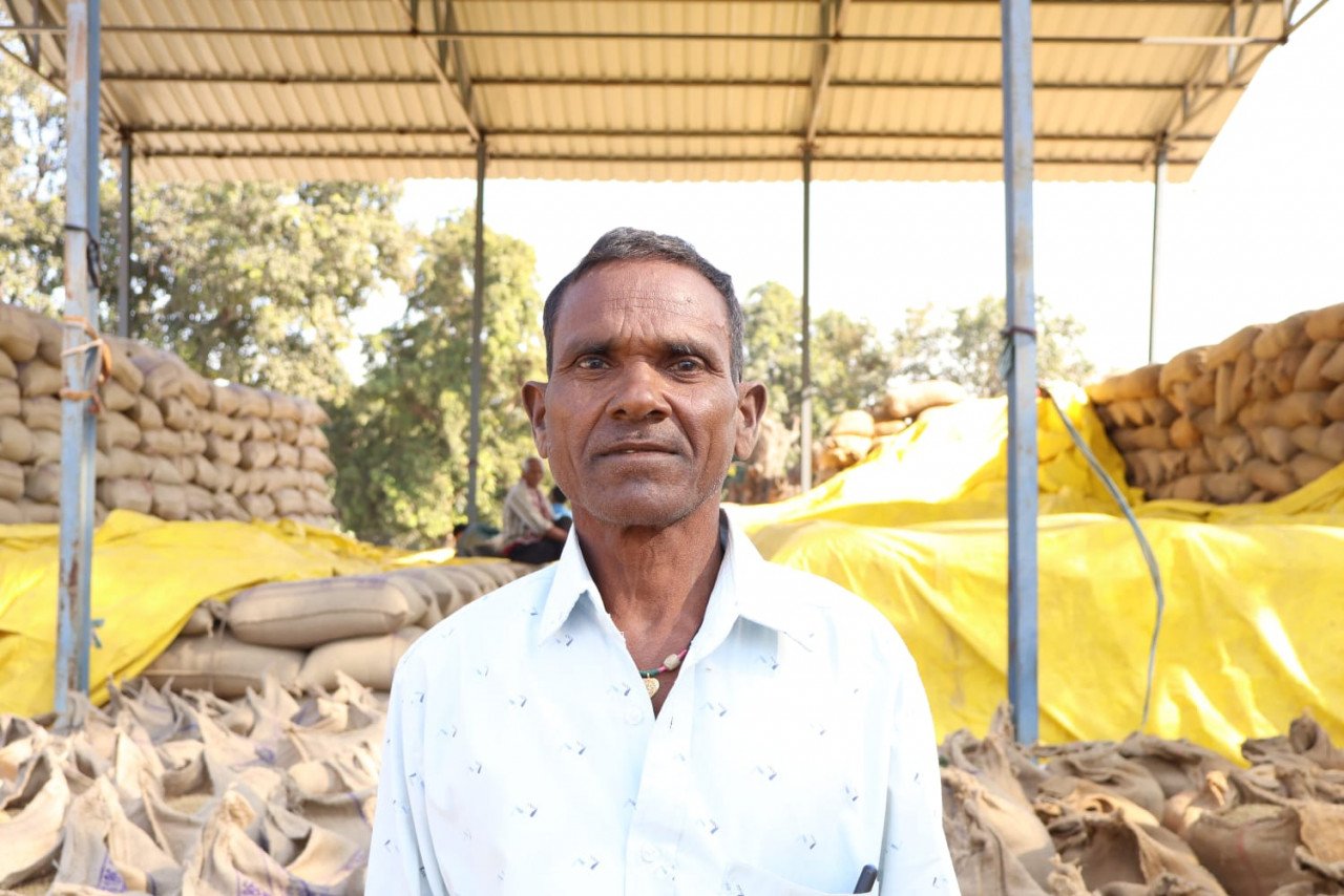धान विक्रय से चेहरे पर खुशी की चमक – प्रसन्न कृषक गोवर्धन प्रसाद कैवर्त