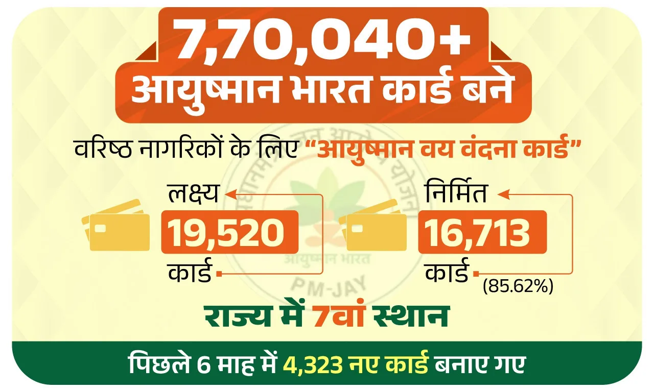 जिले में अब तक बने 7.70 लाख से अधिक आयुष्मान कार्ड, राज्य में आठवां स्थान