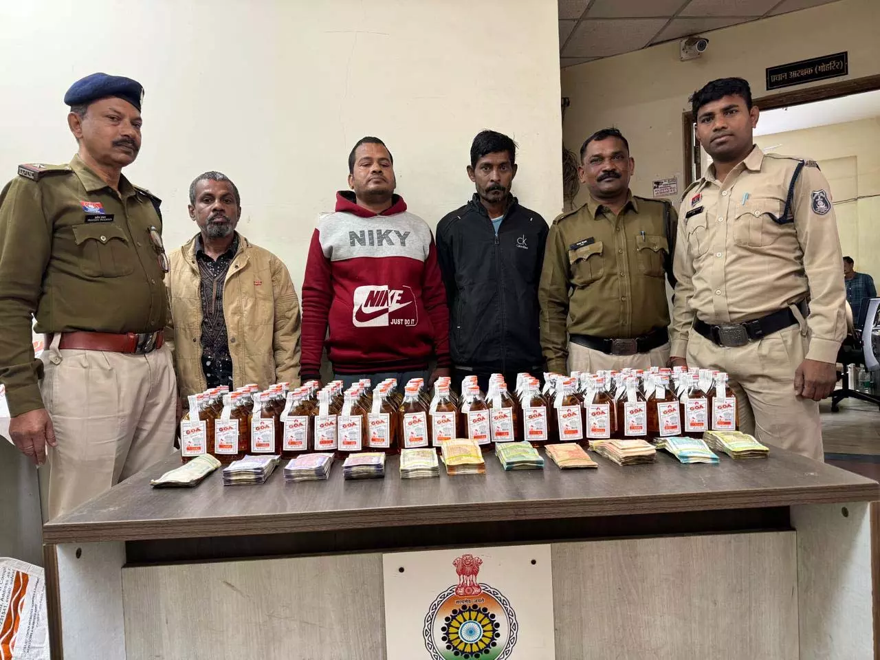 रायपुर: शनिवार को एण्टी क्राईम एण्ड साईबर यूनिट की टीम को सूचना प्राप्त हुई कि थाना कोतवाली क्षेत्रांतर्गत गांधी नगर में कुछ व्यक्तियों द्वारा अवैध रूप से शराब बिक्री करने के साथ ही सट्टा संचालन किया जा रहा है। वरिष्ठ अधिकारियों के निर्देशन में एण्टी क्राईम एण्ड साईबर यूनिट की 20 सदस्यीय टीम द्वारा उक्त स्थान पर जाकर रेड कार्यवाही किया गया। रेड कार्यवाही के दौरान अवैध रूप से शराब बिक्री करते तथा पर्ची के माध्यम से सट्टा संचालित करते 03 आरोपियों को पकड़ा गया, पूछताछ में व्यक्तियों ने अपना नाम मोह. रफीक खान, घनश्याम शर्मा एवं अरूण सोना होना बताने के साथ रवि साहू निवासी कालीबाड़ी रायपुर द्वारा शराब बिक्री तथा सट्टा संचालित करवाना बताया गया।
