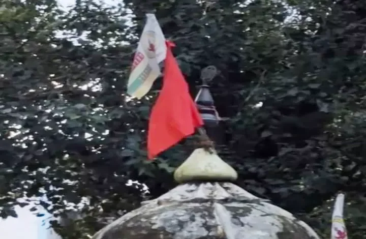 कवर्धा । कामठी गांव में मदिर के गुबंज में भगवा झंडा लहराने को लेकर एक बार फिर विवाद की स्थिति बन सकती है. क्योंकि गांव में नवरात्रि पर्व में माता दुर्गा प्रतिमा स्थापना को लेकर पहले से ही गांव के दो पक्षों में विवाद रहा है. गांव में समाजिक सद्भाव बनी रहे और हालात न बिगड़े इसके मद्देनजर कलेक्टर खुद ग्रामीणों के बीच पहुंचे और सभी पक्षों से शांति बनाए रखने की अपील की. दरअसल, महाअष्टमी के दिन हुआ ये कि मंदिर समिति और ग्रामीणों ने साथ मिलकर मंदिर के गुम्बज पर भगवा ध्वज लगा दिया, जबकि वहां पहले से ही गोंडवाना धर्म का सतरंगी झंडा लहर रहा था. इसी के चलते एक बार फिर विवाद की आशंका गहराने लगी है ।