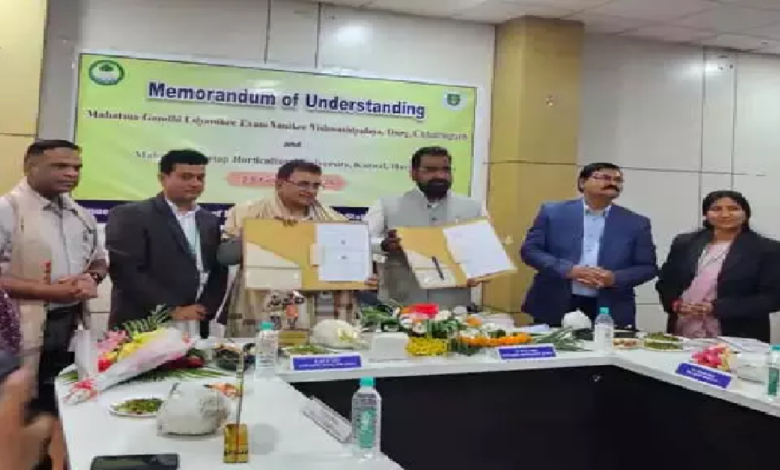 राजनांदगांव। छत्तीसगढ़ और हरियाणा के 2 प्रमुख विश्वविद्यालयों के बीच उद्यानिकी-वानिकी शिक्षा के क्षेत्र में महत्वपूर्ण समझौता हुआ है। महात्मा गांधी उद्यानिकी-वानिकी विश्वविद्यालय, दुर्ग और महाराणा प्रताप हॉर्टिकल्चर यूनिवर्सिटी, करनाल ने सोमवार को समझौता ज्ञापन पर हस्ताक्षर किए। हस्ताक्षर के बाद विशेषज्ञों ने महाविद्यालय के अनुसंधान प्रक्षेत्रों का निरीक्षण किया।