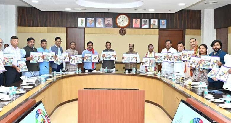 मुख्यमंत्री विष्णु देव साय ने आज नवा रायपुर स्थित मंत्रालय में आयोजित मंत्रिमंडल की बैठक के दौरान राज्य नीति आयोग, छत्तीसगढ़ द्वारा तैयार “सतत विकास लक्ष्य (SDG) राज्य एवं जिला प्रगति रिपोर्ट 2024” का विमोचन किया। इस अवसर पर मंत्रिपरिषद के सभी सदस्य उपस्थित थे।