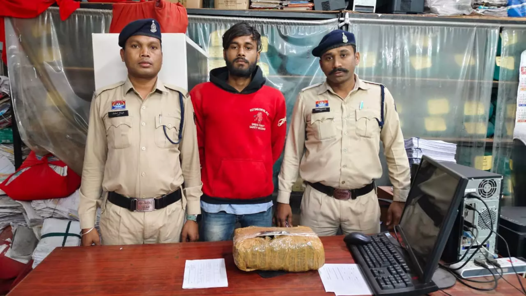 रायपुर। गांजा बिक्री करने ग्राहक तलाशते युवक पकड़ा गया है। पुलिस को मुखबीर से सूचना मिली कि अग्रसेन धाम चौक फुण्डहर रोड तेलीबांधा में एक व्यक्ति मादक पदार्थ गांजा रखकर बिक्री हेतु ग्राहक की तलाश कर रहा है। जिस सूचना पर मौके पर पहूँच कर संदेही अभय मिर्चे पिता कन्हैया लाल मिर्चे उम्र – 24 वर्ष पता तेलीबांधा गली नबंर 02 को घेराबंदी कर पकड़ा गया। जिसके कब्जे से मादक पदार्थ गांजा कुल 2.122 किलोग्राम कीमती 45,000 रूपये मिला।