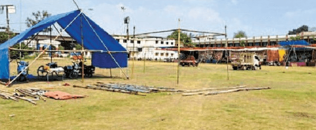 ष्पत्रिकाष् की पड़ताल में सामने आया कि मैदान में आगजनी जैसी आपात स्थिति से निपटने कोई संसाधन नहीं हैं। फायर ब्रिगेड या रेत की बाल्टियां तक नहीं रखी गई हैं। पानी टैंकर भी नहीं रखे गए हैं। दुकानों के बीच मापदंड अनुसार तीन मीटर की दूरी नहीं रखी गई है और अधिकांश दुकानें बांस.बल्ली तथा टेंट वाले कपड़े से बनी हैंए जो पूरी तरह प्रतिबंधित है।