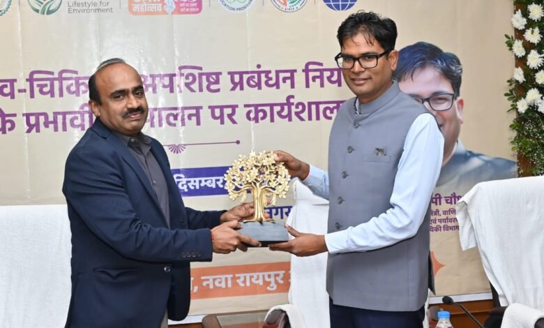 छत्तीसगढ़ पर्यावरण संरक्षण मण्डल द्वारा जैव चिकित्सा अपशिष्ट प्रबंधन नियम, 2016 (संशोधित 2021) के प्रभावी अनुपालन और जागरूकता बढ़ाने के उद्देश्य से आयोजित राज्य स्तरीय कार्यशाला का सफल आयोजन आज नवा रायपुर में हुआ। कार्यशाला के उद्घाटन सत्र में मुख्य अतिथि के रूप में उपस्थित वित्त, वाणिज्य कर, आवास एवं पर्यावरण तथा योजना एवं सांख्यिकी मंत्री ओ.पी. चौधरी ने कहा कि जैव चिकित्सा अपशिष्ट का उचित प्रबंधन केवल स्वास्थ्य संस्थानों की नहीं बल्कि पूरे समाज की सामूहिक जिम्मेदारी है।