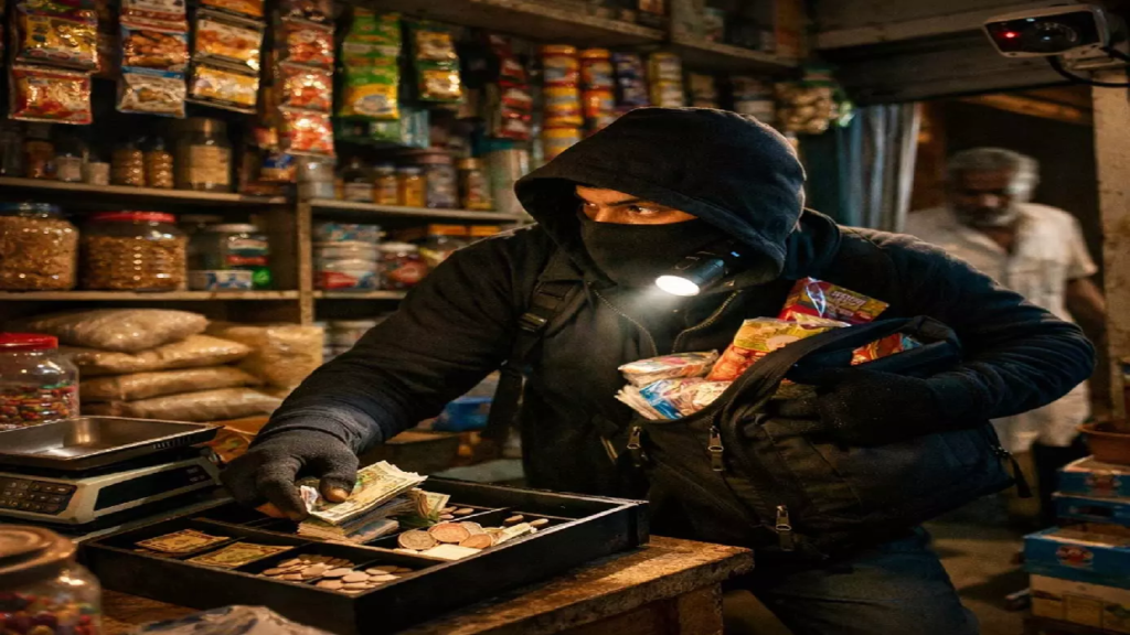 उसके बाद दुकान सामान्य समय के अनुसार रात्रि 07 बजे बंद कर घर चले गए। दूसरे दिन यानी 18 मार्च 2026 को सुबह 09:30 बजे दुकान खुली और मुख्य दरवाजे का सटर का ताला खोला गया। दुकान के अंदर जाने पर देखा गया कि सामान बिखरा हुआ था। रेक में रखे सामान जैसे तेल, साबुन, निरमा, शक्कर, चायपत्ती, चप्पल, ब्लूटूथ ब्रश, जिभ्भी, परफ्यूम, मिक्चर, बिस्किट आदि में से कई सामान गायब थे। इसके अलावा गल्ला में रखे 20,000 रुपये की नकदी भी चोरी हो गई थी।