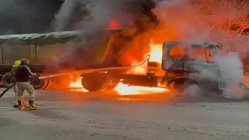 कोरबा। सीएसईबी चौकी क्षेत्र के अशोक वाटिका स्टेडियम रोड पर कोयले से भरे ट्रेलर में अचानक आग लग गई। कुछ ही मिनटों में आग ने पूरे वाहन को घेर लिया। धुएं का गुबार दूर तक फैल गया और सड़क पर अफरा-तफरी मच गई। प्रत्यक्षदर्शियों के मुताबिक, ट्रेलर स्टेडियम रोड से गुजर रहा था तभी केबिन के पास से धुआं उठने लगा। देखते ही देखते आग भड़क गई।