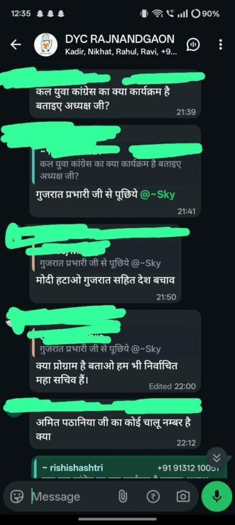राजनांदगांव: कांग्रेस के निर्वाचित पदाधिकारी ने आज के कार्यक्रम से किया किनारा, पार्टी ग्रुपों में विरोध के स्वर तेज