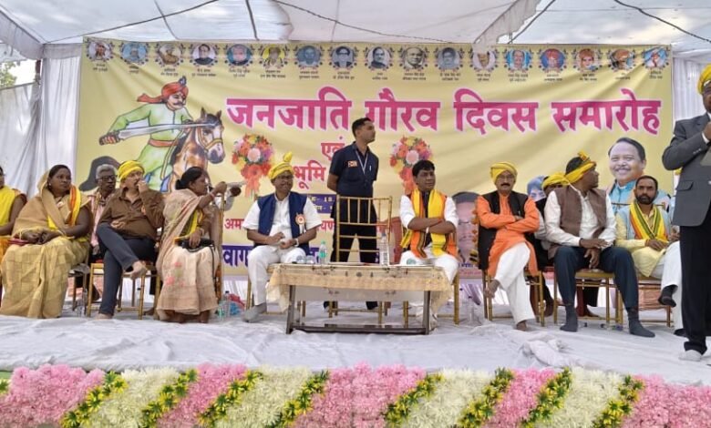 समारोह को संबोधित करते हुए अनुसूचित जनजाति आयोग के अध्यक्ष रूप सिंह मंडावी ने कहा कि जनजातीय गौरव दिवस हमारे नायकों को स्मरण करने और उनके आदर्शों को आत्मसात करने का दिन है। छत्तीसगढ़ में आदिवासी समाज एक अलग ही पहचान रखता है। उन्होंने समाज के क्रमिक विकास और विस्तार के संदर्भ में जानकारी दी। समाज के पदाधिकारी एवं जिला पंचायत उपाध्यक्ष भीखम सिंह ठाकुर ने कहा कि शहीद वीर नारायण सिंह ने अन्याय के खिलाफ आवाज उठाकर समाज को दिशा दी। उनकी शहादत हमें सिखाती है कि अधिकारों की रक्षा के लिए संगठित होकर संघर्ष करना आवश्यक है। समाज के वरिष्ठ पदाधिकारी कमलेश ध्रुव एवं आर एन ध्रुव ने भी संबोधित किया। उन्होंने भगवान बिरसा मुंडा और शहीद वीर नारायण सिंह के शहादत पर अपने प्रेरक विचार रखे। इन्होंने कहा कि दोनों वीर अंग्रेजी हुकूमत और प्रतिकूल परिस्थिति के खिलाफ उठ खड़े हुए।कार्यक्रम के दौरान विधिवत पूजा-अर्चना के साथ भूमिपूजन सम्पन्न किया गया। इस अवसर पर समाज के पदाधिकारी, जनप्रतिनिधि, परिक्षेत्र एवं बड़ी संख्या में समाज जन उपस्थित रहे। कार्यक्रम का समापन राष्ट्रभक्ति और सामाजिक एकता के संदेश के साथ हुआ।