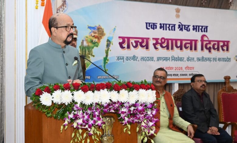 राजभवन में रविवार को छत्तीसगढ़ मण्डपम् में आयोजित स्थापना दिवस समारोह में राज्यपाल रमेन डेका ने छत्तीसगढ़, मध्यप्रदेश, जम्मू कश्मीर, केरल, लद्दाख, और अंडमान निकोबार राज्यों एवं केंद्रशासित प्रदेशों के स्थापना दिवस के अवसर पर कहा कि यह पहल केवल सांस्कृतिक आदान-प्रदान नहीं, बल्कि भावनात्मक एकीकरण का माध्यम है।