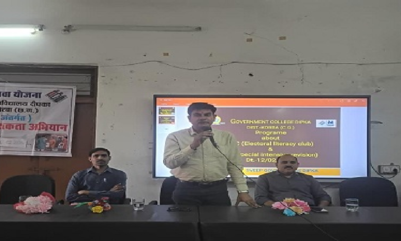 कोरबा । भारत निर्वाचन आयोग, नई दिल्ली एवं मुख्य निर्वाचन पदाधिकारी, छत्तीसगढ़ के निर्देशानुसार जिले के युवाओं को निर्वाचन प्रक्रिया के प्रति जागरूक करने हेतु जिला स्वीप नोडल अधिकारी सतीश प्रकाश सिंह की उपस्थिति में शासकीय महाविद्यालय दीपका में इलेक्टोरल लिटरेसी क्लब का गठन किया गया। इस अवसर पर छात्र-छात्राओं के लिए पोस्टर प्रतियोगिता का आयोजन किया गया। पोस्टर प्रतियोगिता में महाविद्यालय के छात्र-छात्राओं ने बढ़-चढ़कर हिस्सा लिया।