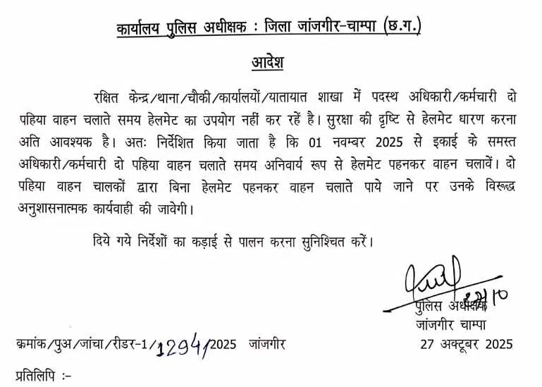 CG : एसपी ने पुलिसकर्मियों के लिए किया हेलमेट अनिवार्य