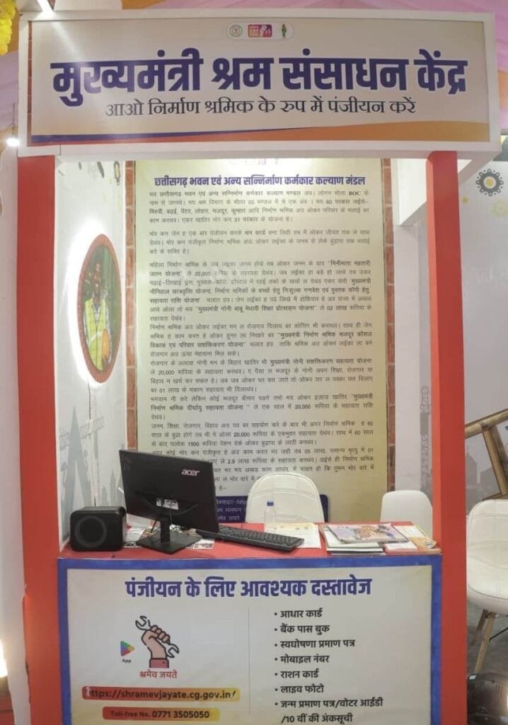 छत्तीसगढ़ राज्योत्सव के तीसरे दिन भी भारी संख्या में रही लोगों की भीड़। राज्य सरकार के श्रम विभाग की विशेष प्रदर्शनी ने लोगों के मन में विशेष आकर्षण एवं उत्साह पैदा किया है। अटल नगर नवा रायपुर स्थित डॉ. श्यामप्रसाद मुखर्जी उद्योग एवं व्यापार परिसर में आयोजित प्रदर्शनी श्रम विभाग की प्रदर्शनी में राज्य के श्रमिकों की मेहनत, विकास और सरकारी नीतियों के समन्वय की कहानी को प्रभावशाली रूप में प्रस्तुत किया गया है।