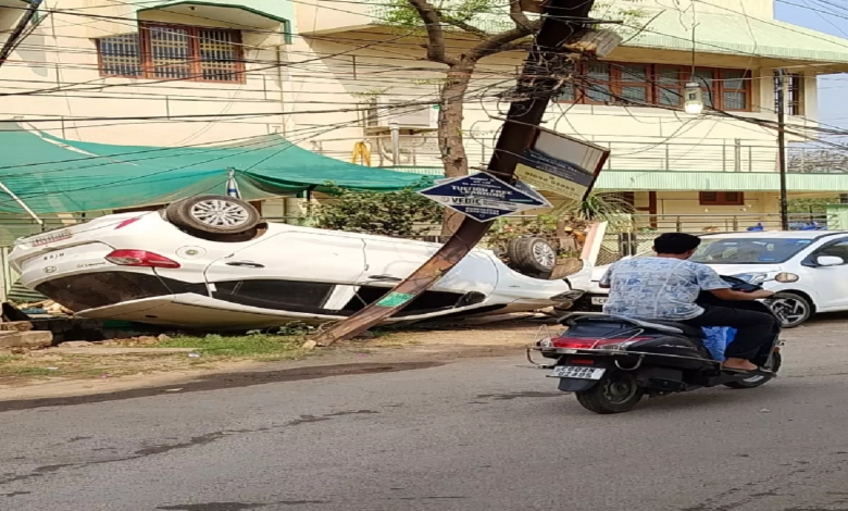 CG : रायपुर : बिजली खंभे से टकराई कार, दुबे कॉलोनी में हादसा …
