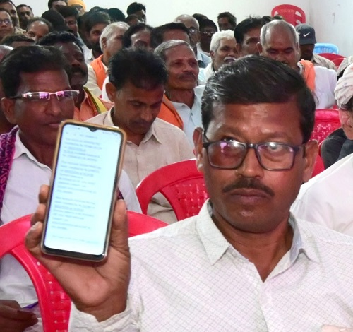 राजनांदगांव : किसान जशवंत साहू ने मोबाईल पर आए मैसेज को दिखाकर जाहिर की अपनी खुशी…