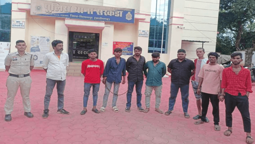 मोहम्मद इसराईल, अरमान खान, सलमान खान, सहादत्त खान उर्फ छोटू, वैधनाथ यादव, ओमप्रकाश मानिकपुरी उर्फ गब्बर, करण यादव उर्फ केडी, गौकरण साहू उर्फ बोदू और कैलाश साहू को पुलिस ने गिरफ्तार किया है।