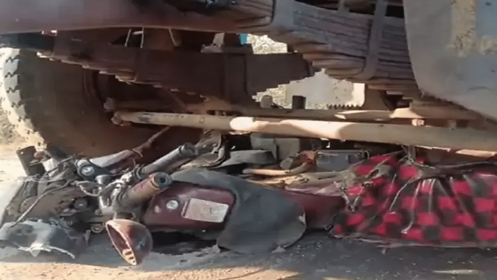 धमतरी। छत्तीसगढ़ के धमतरी जिले में भखारा रोड पर आज एक भयानक सड़क हादसा हुआ, जिसमें पिता की मौके पर मौत हो गई और उनका बेटा गंभीर रूप से घायल हो गया। हादसा उस समय हुआ जब तेज रफ्तार ट्रक ने बाइक को अपनी चपेट में ले लिया। घटना के बाद ट्रक चालक फरार हो गया, लेकिन पुलिस ने ट्रक को जब्त कर लिया है और आरोपी की तलाश जारी है। जानकारी के अनुसार, यह दुर्घटना अर्जुनी थाना क्षेत्र की है। मृतक कल्लू राम साहू (62 वर्ष) अपने बेटे मोतीलाल साहू के साथ बाइक पर ग्राम गुजरा से लिमतरा परेवाडीह की ओर जा रहे थे। इसी दौरान जगदलपुर से रायपुर की ओर जा रहे तेज रफ्तार ट्रक ने उनकी बाइक को जोरदार टक्कर मार दी।
