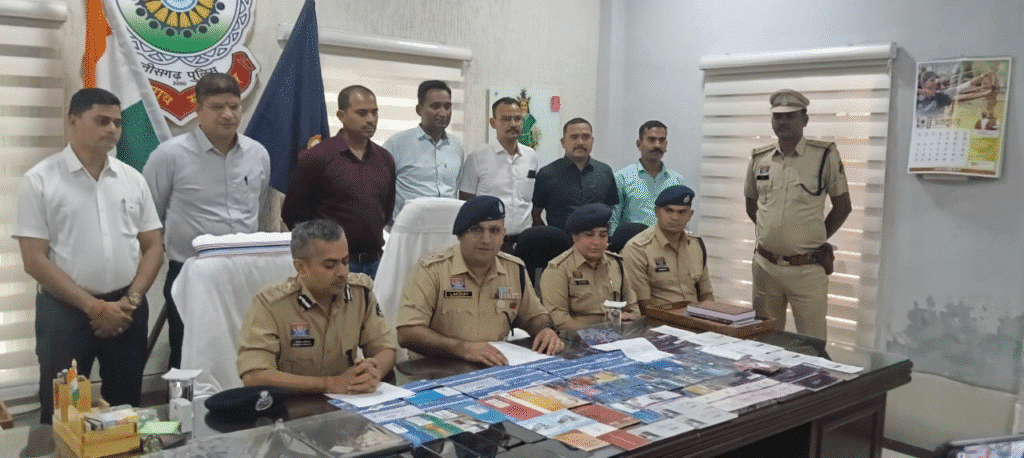 राजनांदगांव/खैरागढ़। खैरागढ़ पुलिस ने साइबर अपराध के खिलाफ बड़ी सफलता हासिल करते हुए एक अंतरराज्यीय साइबर फ्रॉड गिरोह का पर्दाफाश किया है। यह गैंग मुंबई के डोम्बिवली और कल्याण क्षेत्र में सक्रिय था, जो सोशल मीडिया और ऑनलाइन गेमिंग ऐप के जरिये देशभर के लोगों से करोड़ों की ठगी कर रहा था। पुलिस ने इस गिरोह के मास्टरमाइंड सहित 8 आरोपियों को गिरफ्तार कर उनके कब्जे से भारी मात्रा में इलेक्ट्रॉनिक उपकरण और बैंक दस्तावेज जब्त किए हैं।