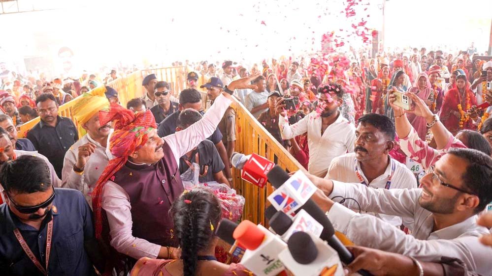 अक्षय तृतीया के शुभ अवसर पर मुख्यमंत्री ने नव-दंपत्तियों पर पुष्पवर्षा कर दिया आशीर्वाद