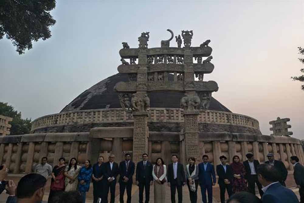 प्रतिनिधियों ने सांची के महान स्तूप, अशोक स्तंभ, तोरण द्वारों और पुरातात्विक संग्रहालय का अवलोकन करते हुए इसकी कलात्मकता और संरक्षण कार्यों की सराहना की। पुरातत्व विशेषज्ञों ने उन्हें सांची के 2300 वर्ष पुराने इतिहास, मौर्य कालीन धरोहर, बौद्ध धर्म के प्रसार में इसकी भूमिका और दक्षिण–पूर्व एशिया से इसके ऐतिहासिक संबंधों के बारे में जानकारी दी।