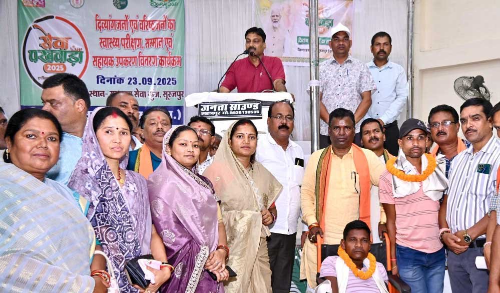 सेवा पखवाड़ा कार्यक्रम के अंतर्गत सूरजपुर जिले में दिव्यांगजनों एवं वरिष्ठजनों के लिए स्वास्थ्य परीक्षण, सम्मान एवं सहायक उपकरण वितरण शिविर का आयोजन किया गया। इस अवसर पर मुख्य अतिथि के रूप में महिला एवं बाल विकास मंत्री मती लक्ष्मी राजवाड़े शामिल हुईं।