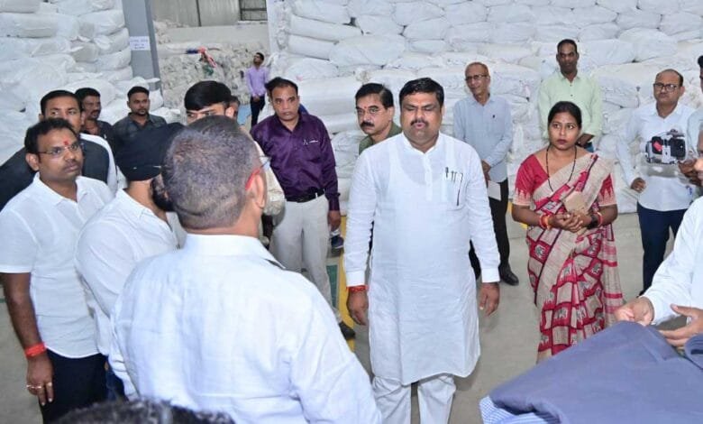 गजेन्द्र यादव ने रायपुर में किया हाथकरघा बुनकर संघ के गोदाम का अवलोकन