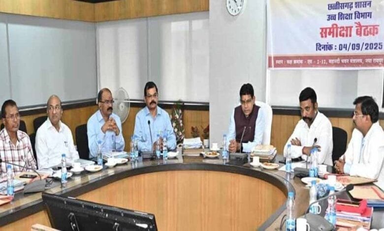 बैठक में उच्च शिक्षा सचिव डॉ. एस. भारतीदासन ने अवगत कराया कि सभी पाठ्यक्रम यूजीसी और राष्ट्रीय शिक्षा नीति के अनुरूप निर्धारित होंगे। कुलपतियों ने अपने-अपने विश्वविद्यालयों एवं संबद्ध कॉलेजों की स्थिति का प्रस्तुतीकरण भी दिया। इस अवसर पर प्रदेश के सभी शासकीय विश्वविद्यालयों के कुलपति और उच्च शिक्षा विभाग के वरिष्ठ अधिकारी उपस्थित रहे।