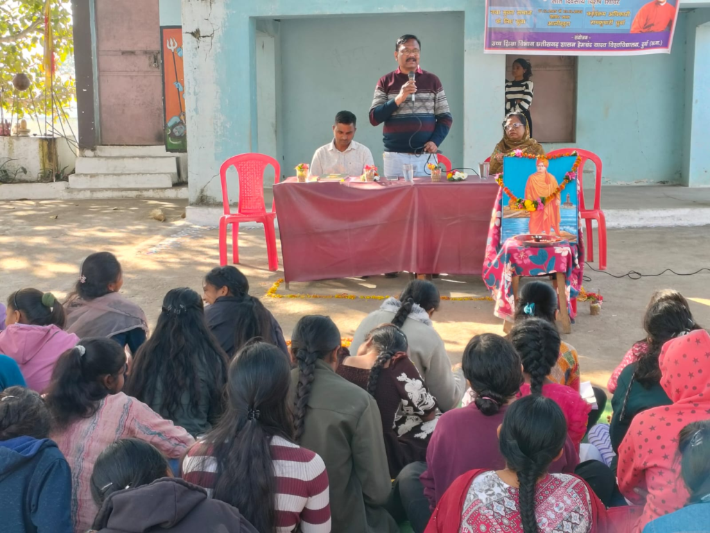 साइबर सेल राजनांदगांव द्वारा एनएसएस कैंप के छात्राओं एवं ग्रामीणों को किया साइबर जागरूक।