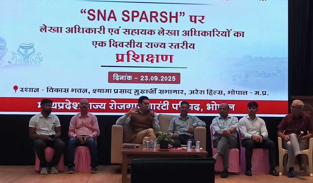 महात्मा गांधी नरेगा अंतर्गत त्वरित भुगतान प्रणाली पर जिला एवं जनपदों पंचायतों में कार्यरत समस्त लेखाधिकारी एवं सहायक लेखाधिकारियों का एक दिवसीय राज्य स्तरीय प्रशिक्षण कार्यक्रम विकास भवन के सभागार में मंगलवार को हुआ। प्रशिक्षण कार्यक्रम में मनरेगा आयुक्त अवि प्रसाद ने सभी प्रशिक्षणार्थियों को SNA-SPARSH के साथ ही मनरेगा के सारे तकनीकी पहलुओं को सीखने के सुझाव देते हुए भुगतान में पारदर्शिता अपनाने के निर्देश दिए। उन्होंने कहा कि यह प्रणाली रियल-टाइम ट्रैकिंग की सुविधा प्रदान करती है। जिससे फंड के उपयोग पर नजर रखी जा सके। प्रशिक्षण में विषय विशेषज्ञों/मास्टर ट्रेनर्स द्वारा "SNA SPARSH" के विभिन्न तकनीकी पहलुओं एवं बारीकियों पर प्रशिक्षणार्थियों को गहन प्रशिक्षण प्रदान किया गया।