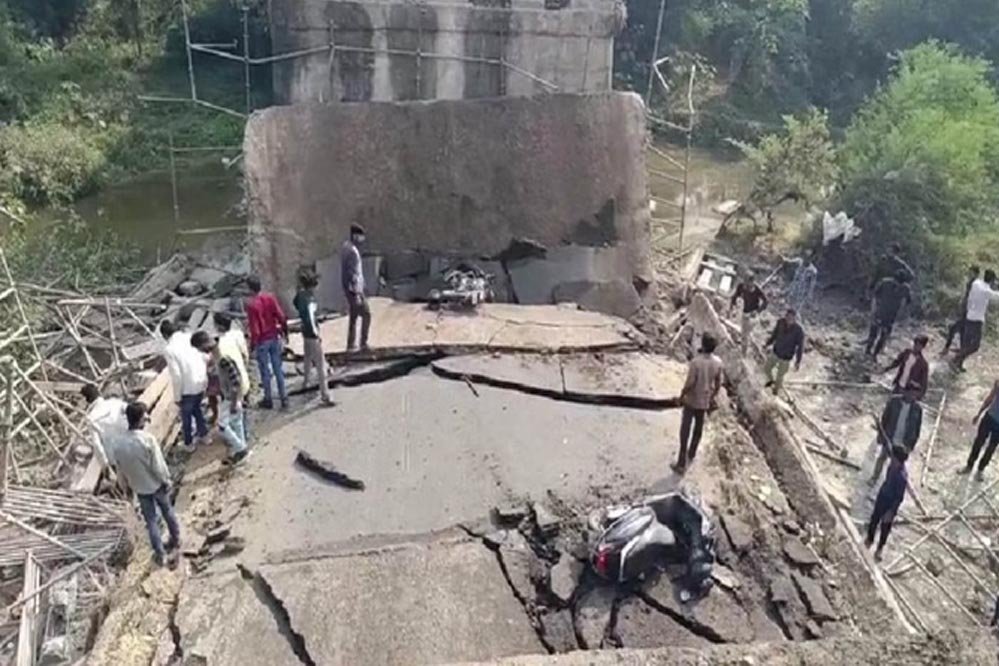 रायसेन हादसा: बरेली-पिपरिया रोड पर पुल गिरा, चार बाइक सवार घायल हुए