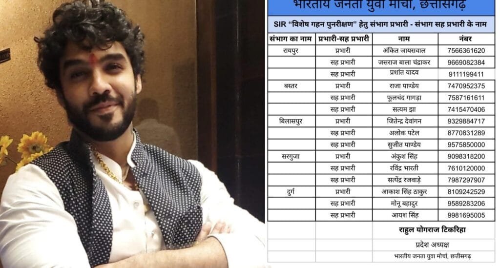 इसी बीच भारतीय जनता युवा मोर्चा ने भी अपने स्तर पर अभियान को गति देने की पहल की है। प्रदेश अध्यक्ष राहुल योगराज टीकरिहा ने सभी पाँच संभागों के लिए प्रभारी एवं सह प्रभारी नियुक्त किए हैं, ताकि संगठनात्मक स्तर पर SIR कार्य का प्रभावी संचालन सुनिश्चित किया जा सके।