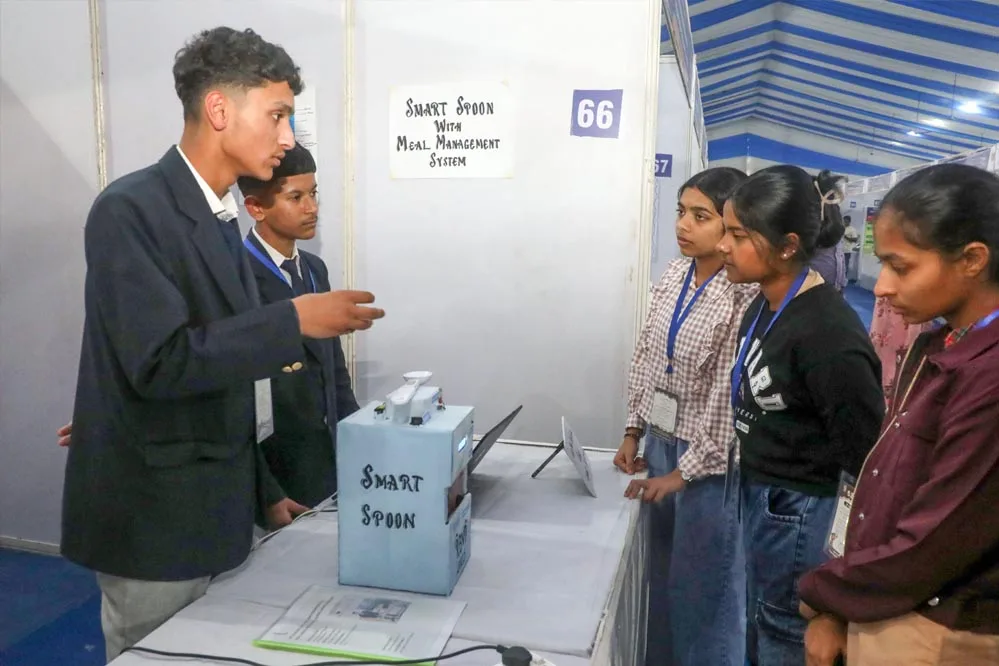 राष्ट्रीय बाल वैज्ञानिक प्रदर्शनी में हिमाचल प्रदेश के राजकीय उत्कृष्ट माध्यमिक विद्यालय लालपानी छात्रों ने भोजन की गुणवत्ता की जांच के लिये भोजन प्रबंधन प्रणाली युक्त स्मार्ट चम्मच का प्रदर्शन किया है। इस साइंस मॉडल के बारे में विद्यार्थी दिव्यांशु सोनी गौरव और उनकी शिक्षक सु नेहा शर्मा ने बताया कि इस मॉडल के माध्यम से भोजन की ताजगी का परीक्षण किया जा सकता है। तैयार किये गये प्रोटोटाइप में रियल टाइम में डिजिटल स्क्रीन पर परिणाम देखा जा सकता है। खाद्यान्न असुरक्षित पाये जाने पर उपकरण अलर्ट देता है। इस तरह के उपकरण से समाज में स्वस्थ खान-पान की आदतों को बढ़ावा मिलेगा।