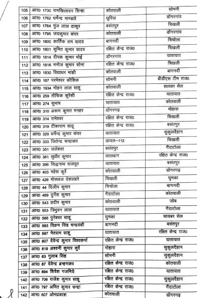 Rajnandgaon: 148 पुलिसकर्मियों का तबादला, यहां देखें लिस्ट