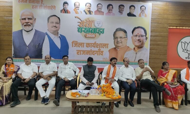राजनंदगांव,  भाजपा द्वारा आज भाजपा कार्यालय में सेवा पखवाड़े की जिला स्तरीय कार्यशाला का आयोजन किया गया, जिसमें प्रदेश महामंत्री यशवंत जैन के नेतृत्व में कार्यकर्ताओं और पदाधिकारी ने सेवा पखवाड़ा को लेकर रणनीति बनाई।