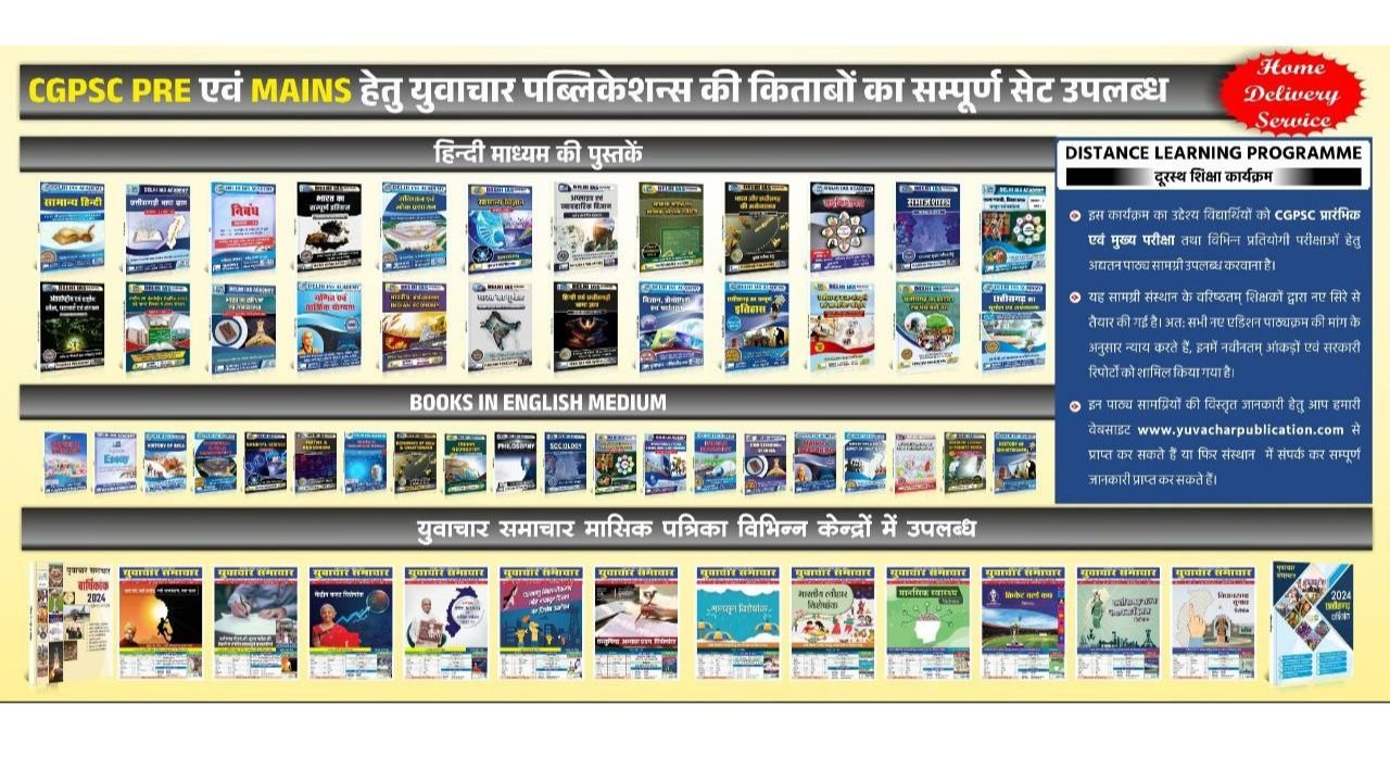छत्तीसगढ़ में सरकारी नौकरी का सपना देख रहे युवाओं के लिए सही अध्ययन सामग्री का चयन हमेशा से एक बड़ी चुनौती रहा है। बाजार में किताबों के ढेर के बीच सटीक, अपडेटेड और सरल भाषा वाली पुस्तकों की कमी को दूर करते हुए ‘युवाचार पब्लिकेशन’ ने अपनी एक अलग पहचान बनाई है। पिछले कई वर्षों से यह पब्लिकेशन छत्तीसगढ़ लोक सेवा आयोग (CGPSC) और व्यापम सहित अन्य प्रतियोगी परीक्षाओं की तैयारी करने वाले लाखों अभ्यर्थियों के लिए भरोसेमंद साथी बनकर उभरा है।