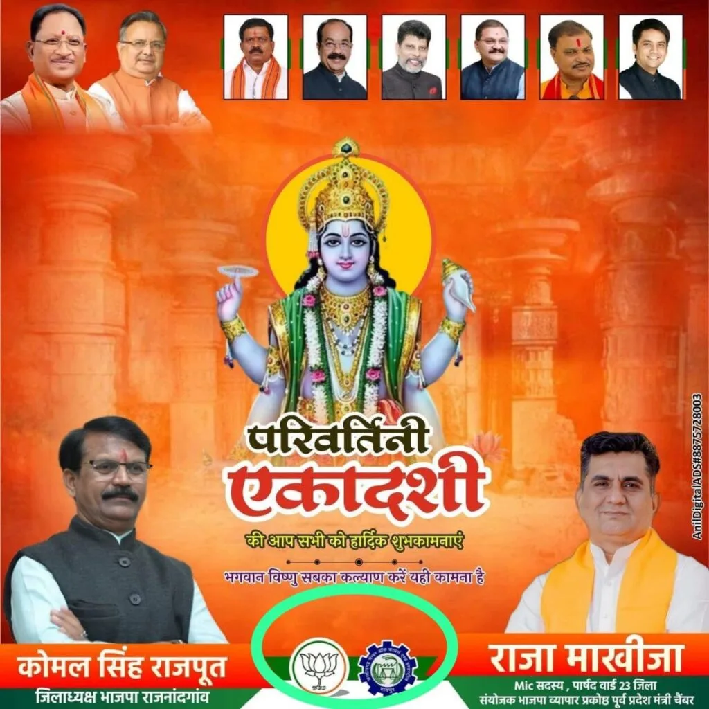 राजनांदगांव जिला भाजपा अध्यक्ष कोमल सिंह राजपूत की फेसबुक आईडी से किए गए एक पोस्ट ने राजनीतिक गलियारों में नई चर्चा छेड़ दी है। गांधी-शास्त्री जयंती, जग़गी वासुदव को बधाई, परिवर्तिनी एकादशी की हार्दिक बधाई का विज्ञापन कोमल सिंह राजपुत की फेस बुक मे साझा किए गए इस पोस्ट में भाजपा का कमल निशान और राजा मखीजा (पार्षद, वार्ड 23 एवं एमआईसी सदस्य) का फोटो तो है ही, साथ में छत्तीसगढ़ चेंबर ऑफ कॉमर्स का लोगो भी लगाया गया है।