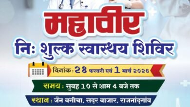 राजनांदगांव में लगेगा विशाल महावीर नि:शुल्क स्वास्थ्य शिविर – रायपुर के विशेषज्ञ डॉक्टर करेंगे उपचार, दवा और ईसीजी की सुविधा…