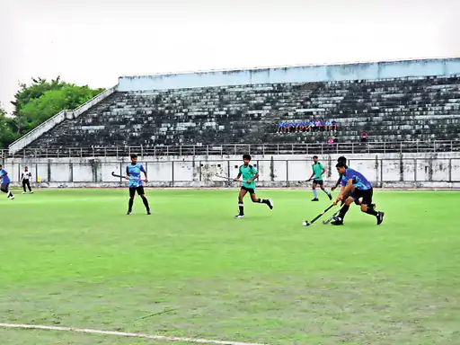 सालभर खेली जाने वाली हॉकी स्पर्धा में हिस्सा ले रहे खिलाड़ी यह प्रदेश का पहला अंतर राष्ट्रीय एस्ट्रोटर्फ हॉकी स्टेडियम है। करीब 10 साल पहले इसका निर्माण किया गया। ऑस्ट्रेलिया की कंपनी ने ग्रीन टर्फ बिछाया था जो अब खेलने लायक नहीं बचा। सालभर यहां पर छत्तीसगढ़ हॉकी, जिला हॉकी संघ और रुद्राक्षम वेलफेयर सोसायटी, विद्युत कंपनी द्वारा राष्ट्रीय और राज्य स्तर की हॉकी स्पर्धा कराई जाती है। इसी मैदान से ट्रेनिंग लेकर आज कई खिलाड़ी प्रदेश की टीम, अन्य राज्यों की टीम, खेलो इंडिया, साई और रेलवे, सीनियर और जूनियर हॉकी इंडिया टीम तक पहुंचे है।