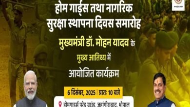 मध्यप्रदेश में 6 दिसंबर को होमगार्ड एवं नागरिक सुरक्षा स्थापना दिवस का आयोजन मुख्यमंत्री डॉ. मोहन यादव होंगे मुख्य अतिथि…