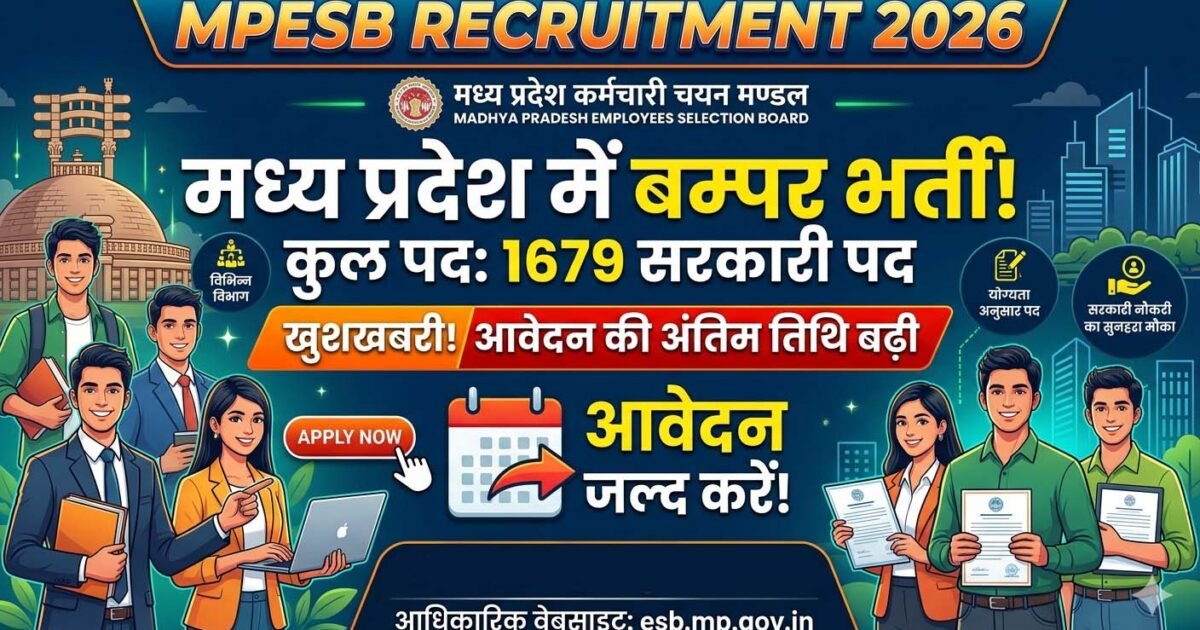 सरकारी नौकरी अपडेट: MPESB भर्ती 2026 के लिए अब बढ़ी अंतिम तिथि, 1679 पदों पर मौका