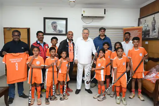 उच्च गुणवत्ता वाली फ्लैश हॉकी स्टिक भेंट की। चिखली स्कूल में अभ्यासरत खिलाड़ियों को यह जर्सी और स्पोर्ट्स सॉक्स निशुल्क प्रदान किए गए। बाल दिवस पर बच्चों ने स्पीकर हाउस का भ्रमण किया और विधानसभा अध्यक्ष से मिलकर विशेष उत्साह और रोमांच का अनुभव किया। पूर्व सांसद अभिषेक सिंह की उपस्थिति ने कार्यक्रम की गरिमा और उत्साह को और बढ़ा दिया। रुद्राक्षम वेलफेयर सोसाइटी की पहल पर चिली स्कूल मैदान में रोज सुबह 5 बजे से अंतर राष्ट्रीय हॉकी खिलाड़ी एवं एनआईएस गोल्ड मेडलिस्ट कोच मृणाल चौबे के मार्गदर्शन में निशुल्क हॉकी प्रशिक्षण दिया जाता है।