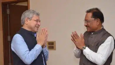 CM विष्णुदेव साय ने रायपुर में केंद्रीय रेल मंत्री अश्विनी वैष्णव से की शिष्टाचार मुलाकात