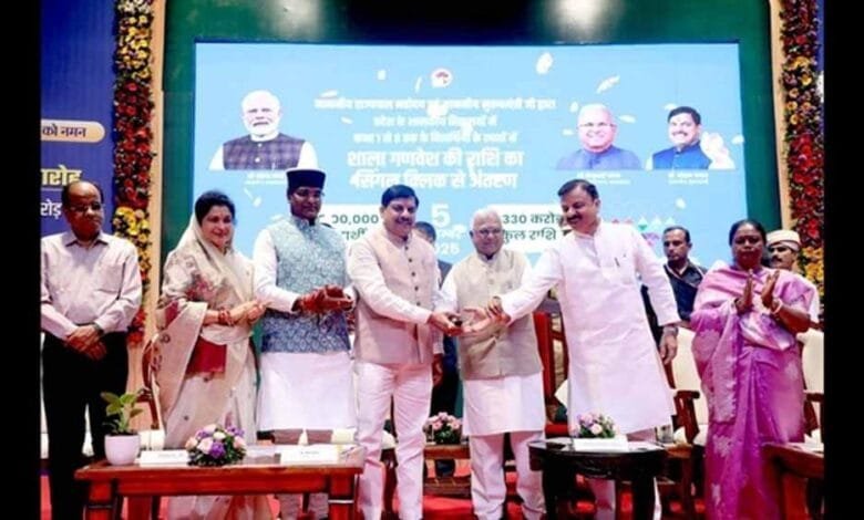 सीएम डॉ. यादव आरसीव्हीपी नरोन्हा प्रशासन अकादमी में आयोजित राज्य स्तरीय शिक्षक सम्मान समारोह 2025 को संबोधित कर रहे थे. इस मौके पर राज्यपाल मंगुभाई पटेल भी मौजूद थे. कार्यक्रम में सीएम डॉ. यादव ने सरकारी स्कूलों के कक्षा 1 से 8 तक के 55 लाख विद्यार्थियों के खातों में स्कूल यूनिफॉर्म के लिए 330 करोड़ रुपये ट्रांसफर किए. इस मौके पर सीएम डॉ. यादव ने शिक्षकों को चौथे वेतनमान की सौगात भी दी. कार्यक्रम में प्रदेश के शिक्षकों का सम्मान भी किया गया.